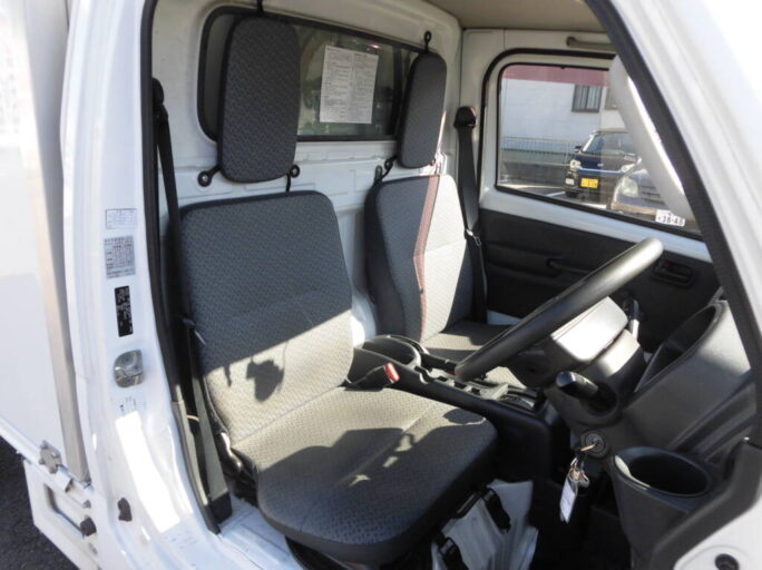 走行が少ない低温式の軽トラックの入庫です! ガソリン車でオートマチック! 左サイドスライドドア 遮温カーテン付で床ステンのプラ敷板付です
