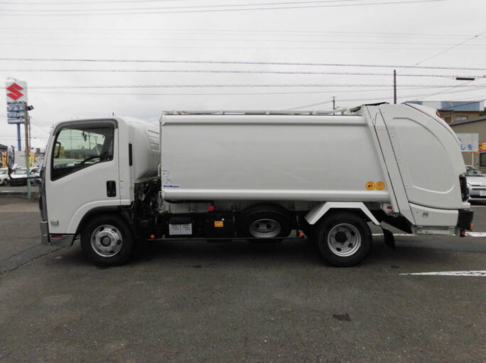 令和6年10月登録 登録済未使用車 いすゞエルフ 塵芥車 2.85T積載 7.2㎥巻込み式【回転式】 排出押出式 連続SW/汚水タンク