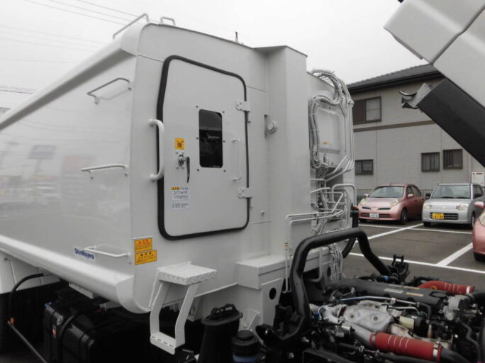上物:新明和【GR074-5634N】 コンテナ右側面梯子 100㍑タンク F廻純正メッキパーツ多数 タイヤ:ミックスタイヤ