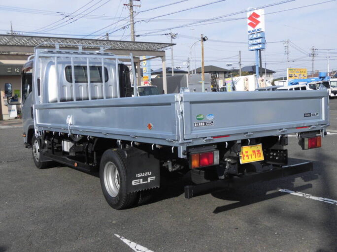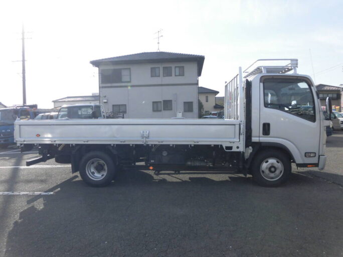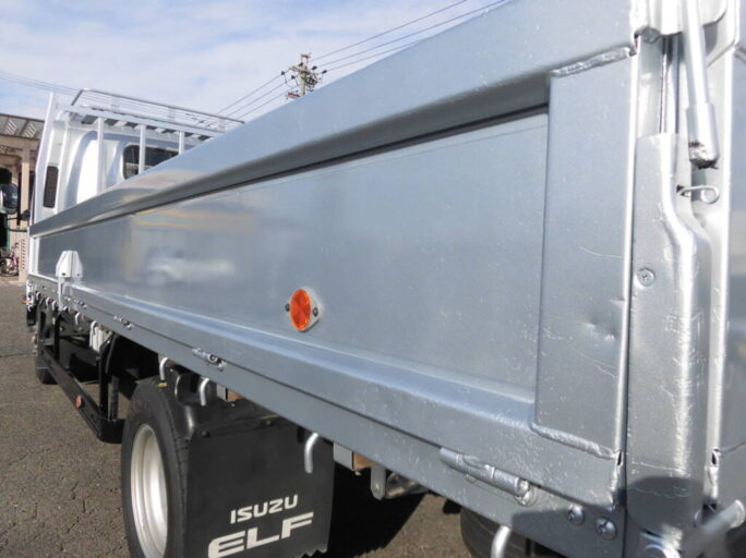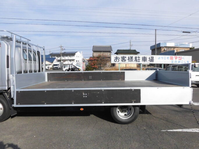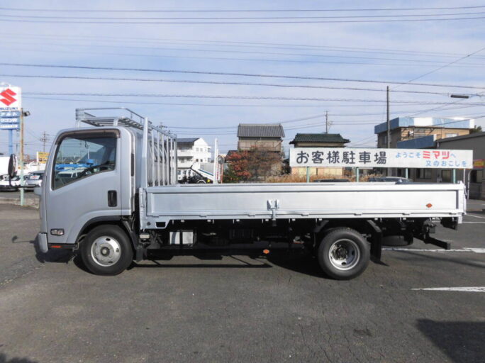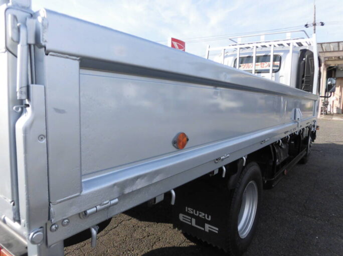 平成26年10月登録 いすゞエルフ 3T積載 高床 平ボディー ワイドロング 3方開 ルーフキャリー セイコーラック左右