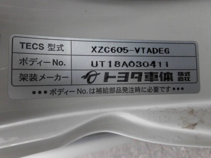 ラッシングレール2対 サイドマーカー2対 工具箱 リヤステップ 上物:トヨタ車体【XZC605-VTADEG】 修復歴:無 載せ換え:無
