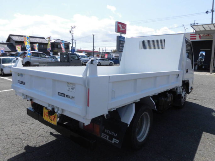 平成31年1月登録 いすゞエルフ 2T積載 全低床 ダンプ 3方開 極東開発製【DD02-31】 リヤ煽り中間ピン2ヶ所 輪止入
