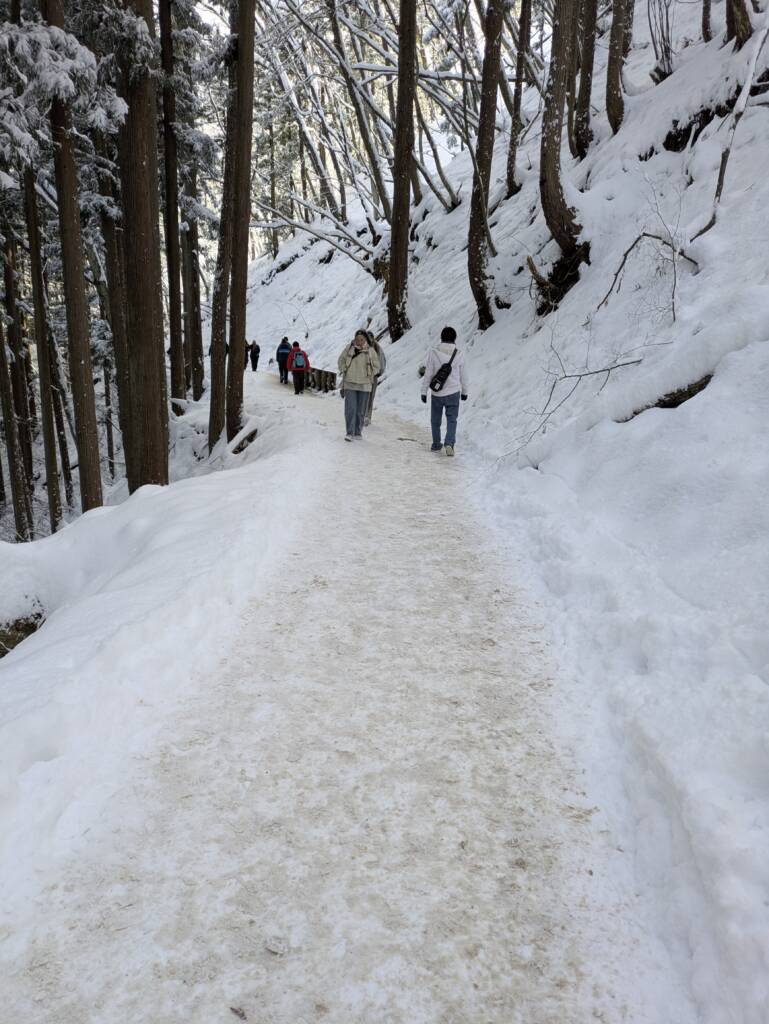 宿泊先から、車で2時間ほど走り、その後は雪山道を40分くらいひたすら歩くとそこはあります。
