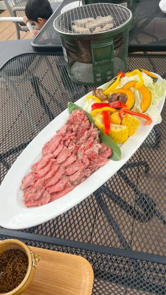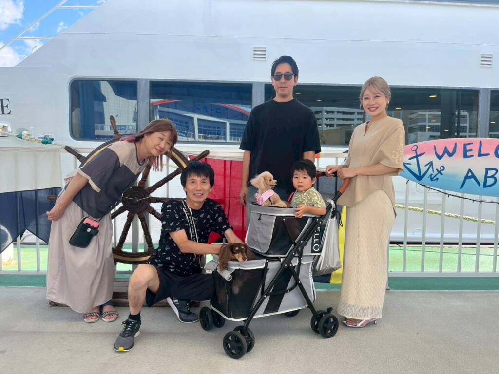 初日はホテルのテラスで、バーベキューして、翌日は、娘たち夫婦のワンコたちも乗れる船に乗って